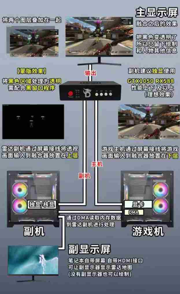 总之,大家现在大概都对DMA外挂有了一个大致的了解了,如果你依然没有明白也毋需焦急,因为只要接着关注我们“雷达杯”的比赛,就能最直观地以DMA的视角纵览整个对局全局,感受到DMA外挂使用者的上帝视角。