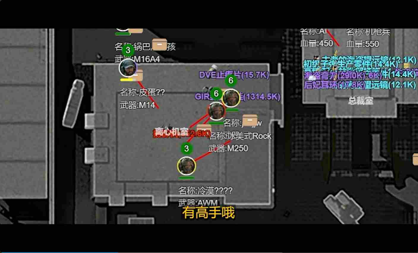 接下来就是两名护航者之间不断的相互试探拉扯,而老板们就在旁边看着,难以插足这场高参数水平的对决。
