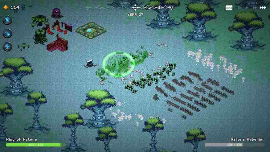 每位国王都拥有独特的起始建筑、部队与法术卡组。玩家可通过击败入侵者获取特殊卡牌,解锁各类增益效果;或积累黄金招募佣兵,施展黑魔法驱使亡灵,甚至借助自然之力击溃对手。