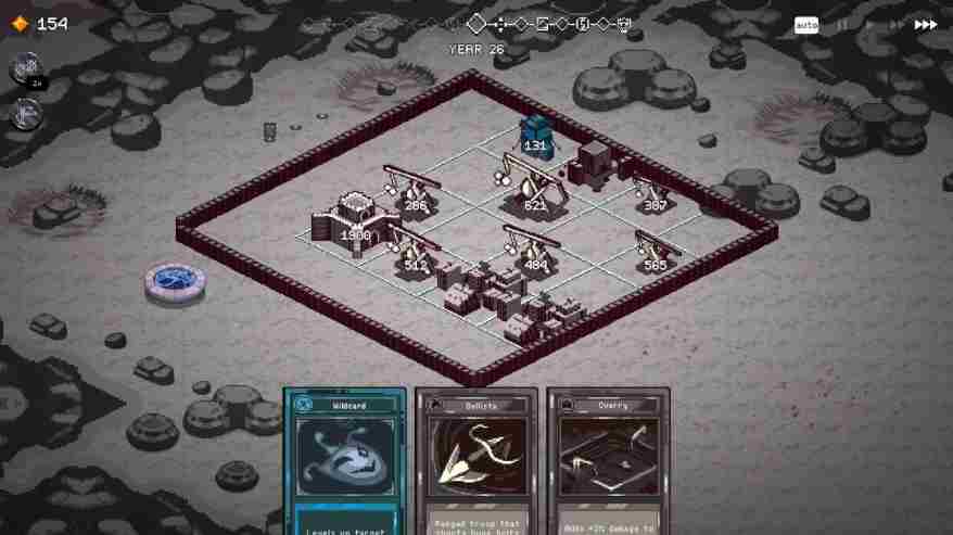 游戏核心玩法围绕每回合的卡牌配置与防御展开,通过建筑布局、军队调度、法术配合等战略规划,利用连击加成应对各类特殊事件,延续王国命运。同时还需关注外交动态,选择与强国结盟、对觊觎者宣战或吞并弱国。