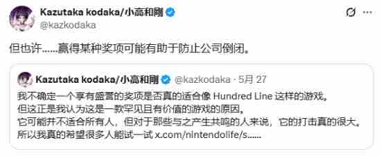 “但也许……赢得某种奖项可能有助于防止公司倒闭。”