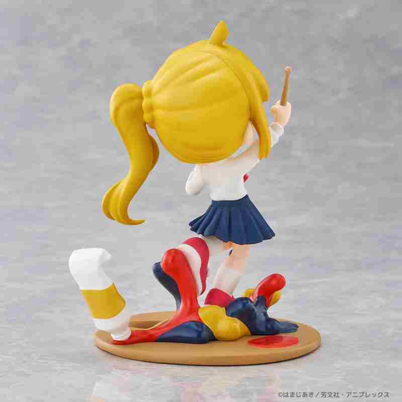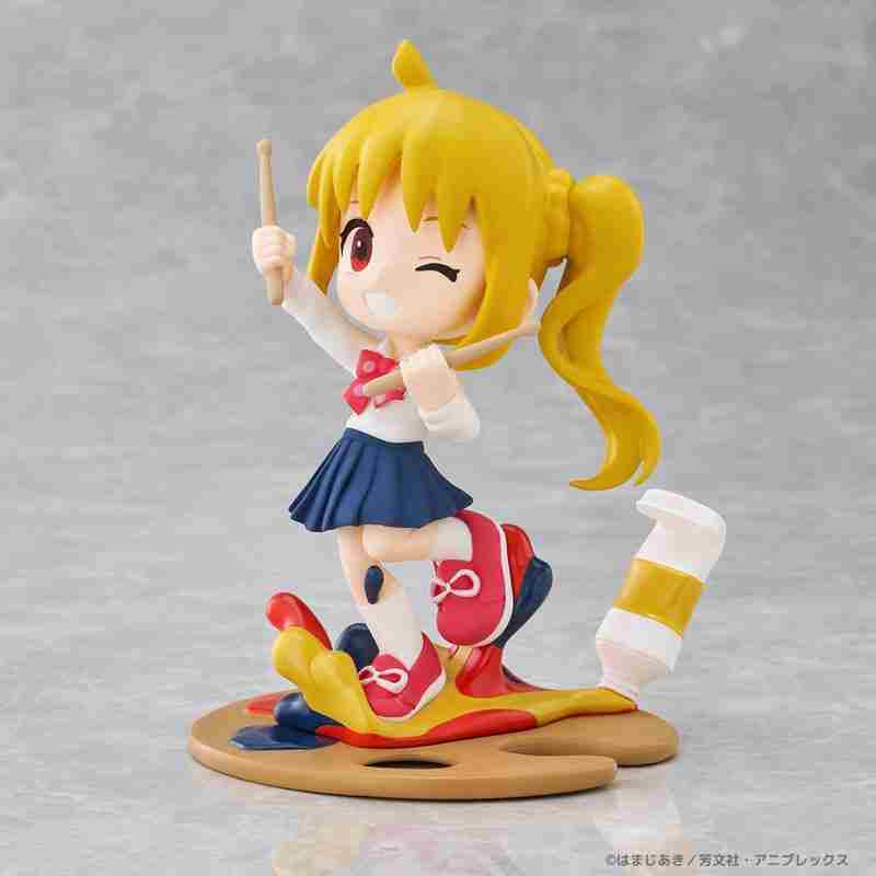 这款模型的全高约为11.5厘米,生动捕捉了虹夏打鼓时充满热情的姿态。模型重点展示了她的标志性黄色发带以及活泼的双马尾造型,这些元素将她的青春气息表现得淋漓尽致。服装方面,模型精致地再现了虹夏的格子短裙,细腻的皱褶和鼓棒的握持姿势更是为整个造型增添了动感,使得模型的整体形象活灵活现。