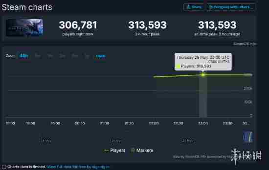 《艾尔登法环》衍生Roguelike合作动作游戏《艾尔登法环:黑夜君临》现已发售!根据SteamDB数据显示,本作在Steam平台的在线人数峰值已经突破了31万人!截止至发稿时仍有超过30万人正在游戏中!