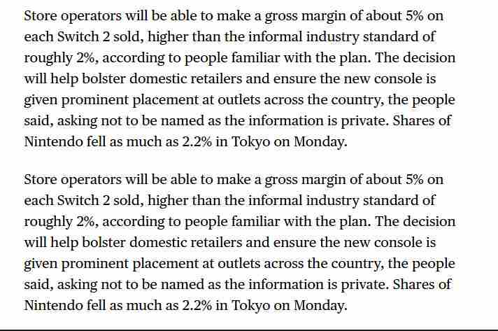 近日有媒体报道称任天堂提升日本零售商毛利率至5%,以促进Switch 2销量。对此,任天堂于6月4日通过社交平台X发布声明,坚决否认该报道的真实性。官方重申,始终坚守商业合作信息的保密原则,并强调2025年6月2日的报道纯属虚构。