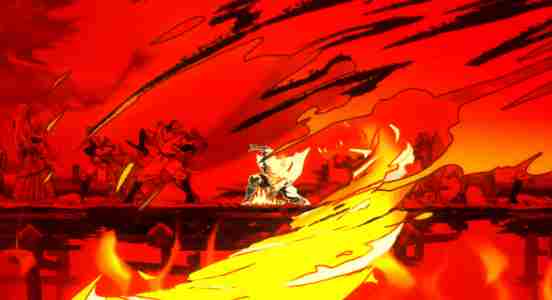 我们见过很多横版动作游戏使用“光污染”,辅以夸张的光效、运动轨迹,或者物理击飞效果等效果来体现,但《超级忍 反攻的斩击》天生自带2D动画的优势,在以上这些手法之外,特别强调了2D动画的抽帧效果,以达成极佳的视觉冲击力。