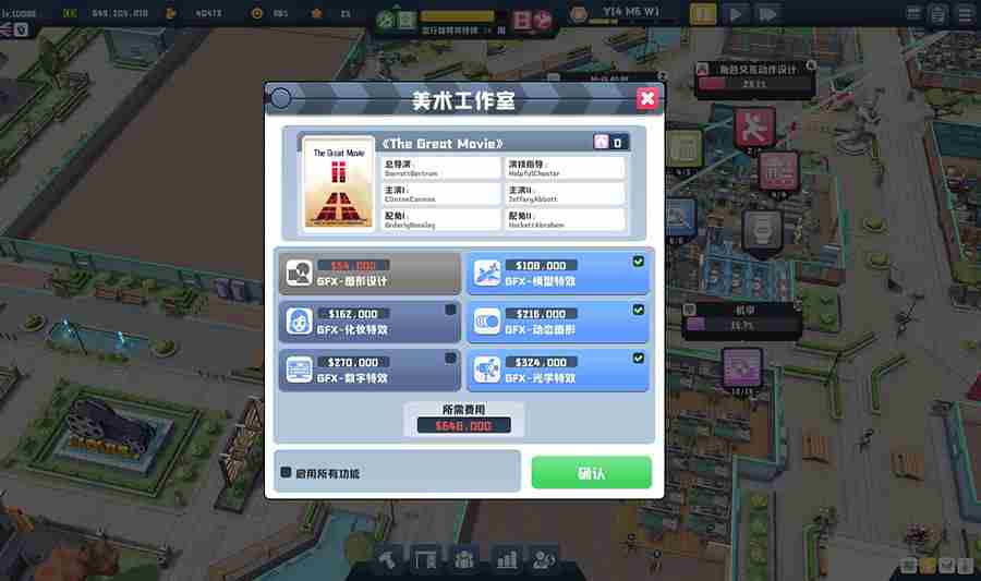 科技树升级:投资后期制作技术,解锁字幕、配音、剪辑新维度,用Post Office将电影质量提升至颁奖季水准。