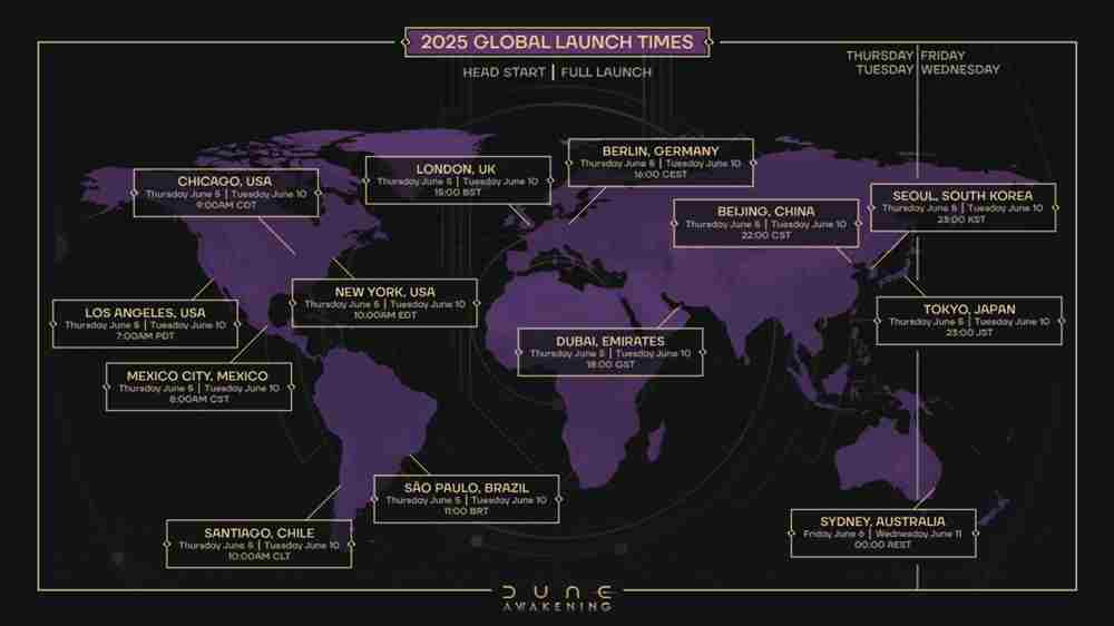 《沙丘:觉醒》采用经典的DLC商业模式,没有游戏内商店或订阅服务。游戏正式上线后,将以完整DLC和免费内容更新的形式推出后续内容。关于游戏上线的所有信息,Funcom已发布博客,涵盖了玩家需要了解的一切。玩家可通过全球上线时间表规划自己登陆厄拉科斯星球的时间。