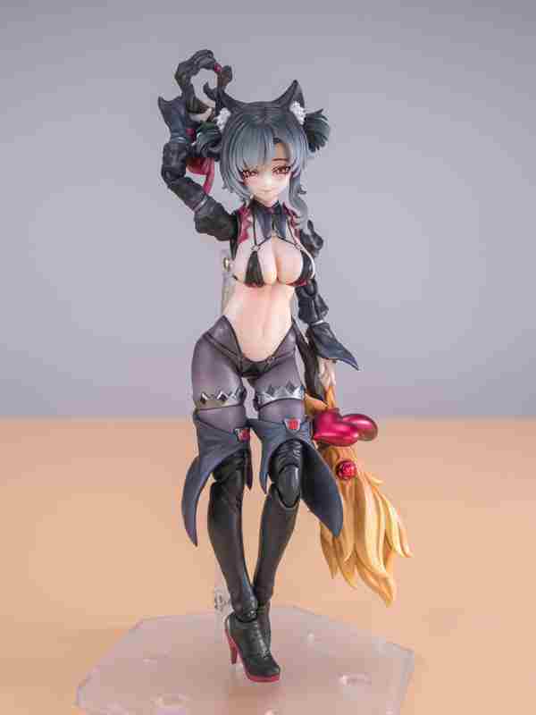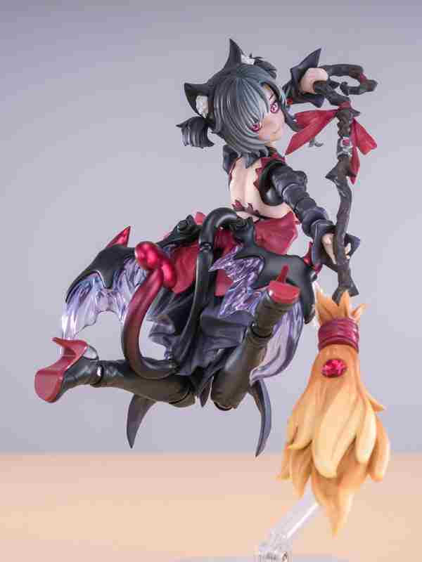 特别值得一提的是,此款模型还配有可拆卸的巫女帽与翅膀,搭配蓬松的蝴蝶结后裙,给人一种梦幻般的魔女形象。猫尾巴则采用了软质材料制作,能够自然地随姿势摆动,增强了模型的动态表现力。为了帮助粉丝们完美展示模特在施展魔法时的迷人姿态,专用的展示支架也随附于此,确保任何动态姿势都能得到稳固支撑。