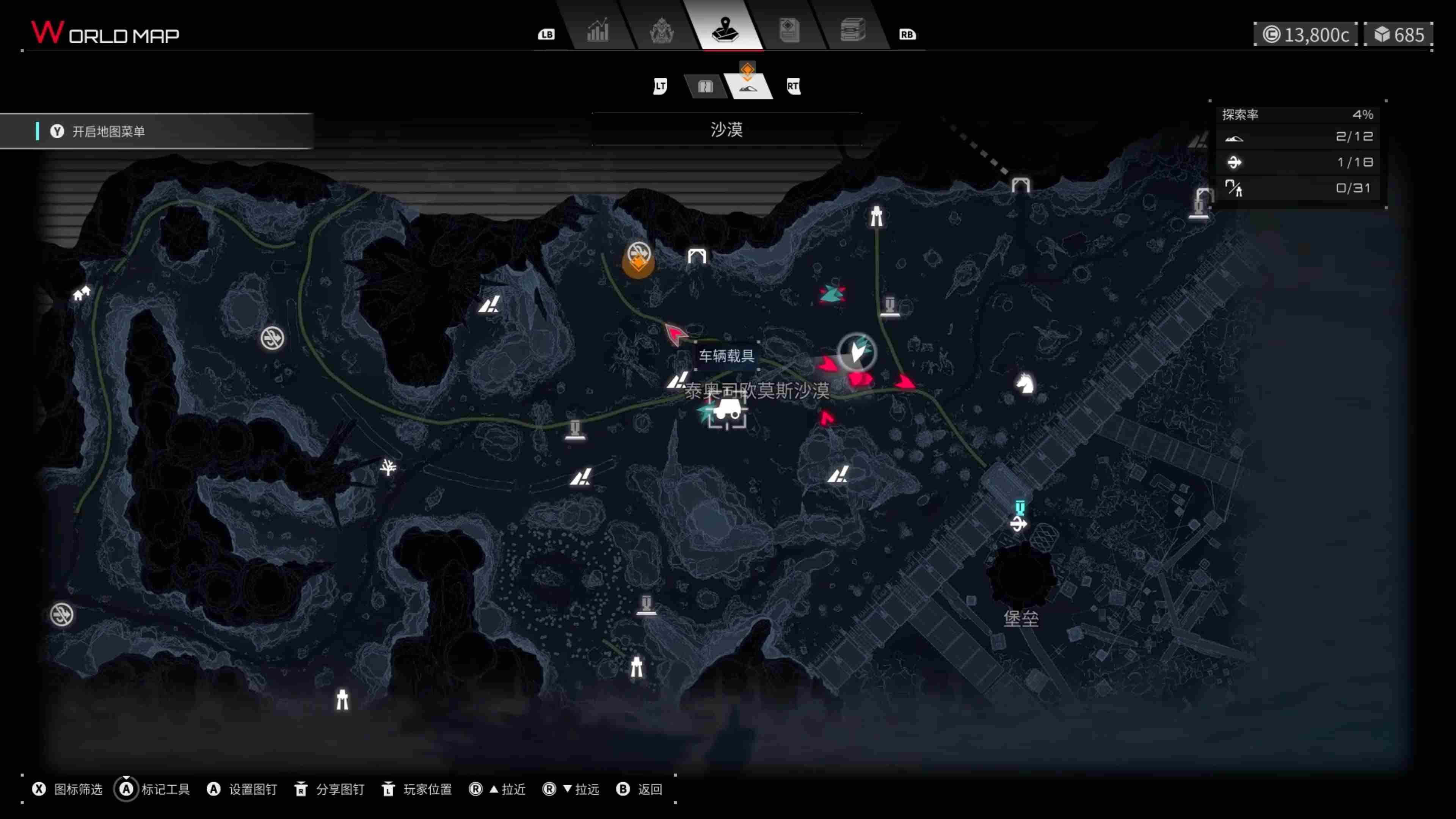 调整好机甲战备后便正式开始自由探索的体验,走出堡垒来到一片满目疮痍的废土荒原,游戏准备了一个喜闻乐见的废土开放世界供玩家肆意探索,地图被划分成为若干个区块(在试玩过程中跨区块探索并未遇到任何限制,或许正式版中会有主线任务等条件限制),玩家可以随自己的喜好对各个区块内容兴趣点进行探索。
