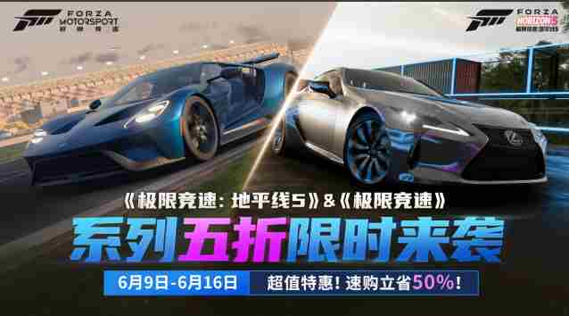 6月9日至6月16日,《极限竞速:地平线5》与《极限竞速》系列游戏将开启限时五折优惠活动,玩家们只需半价即可拥有这款超拟真的赛车大作,畅享驾驶顶级赛车的沉浸式真实体验。