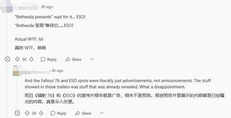 部分玩家坦言,他们原本期待Bethesda能在展会上公布《上古卷轴6》或《星空》的重要消息,但最终一无所获。
