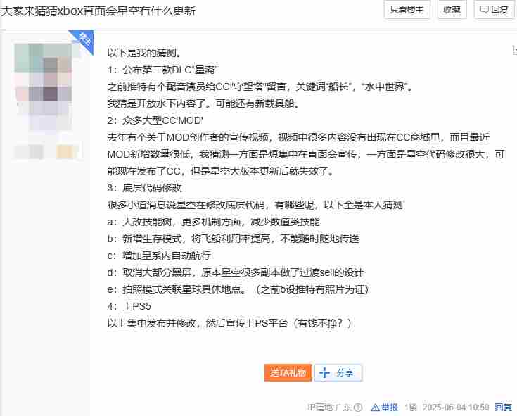 事实上,在发布会前夕,便有玩家对《星空》可能公布的新内容充满期待。鉴于《辐射76》存在通过持续更新实现口碑逆转的成功先例,加之《星空》长期缺乏实质性内容更新,玩家对本次发布会抱有较高期待也在情理之中。