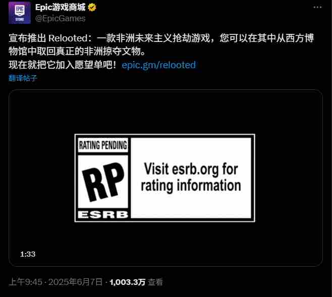 《Relooted》的公布与内容也在网络上引发热议,不少玩家对游戏前景表示好奇:"所以这款游戏的目标受众是谁?"、"一款以非洲历史文物为主题的游戏,内容却是抢劫?"、"很好奇游戏发售当天会有多少人购买"、"我到底看了什么???"