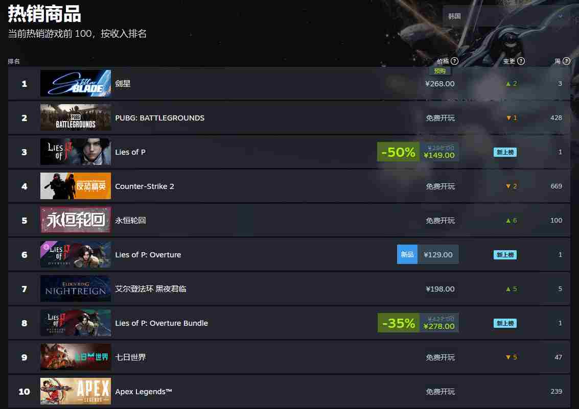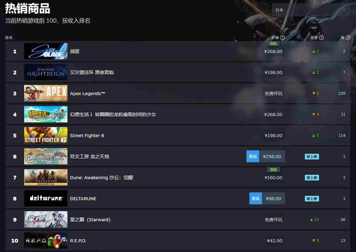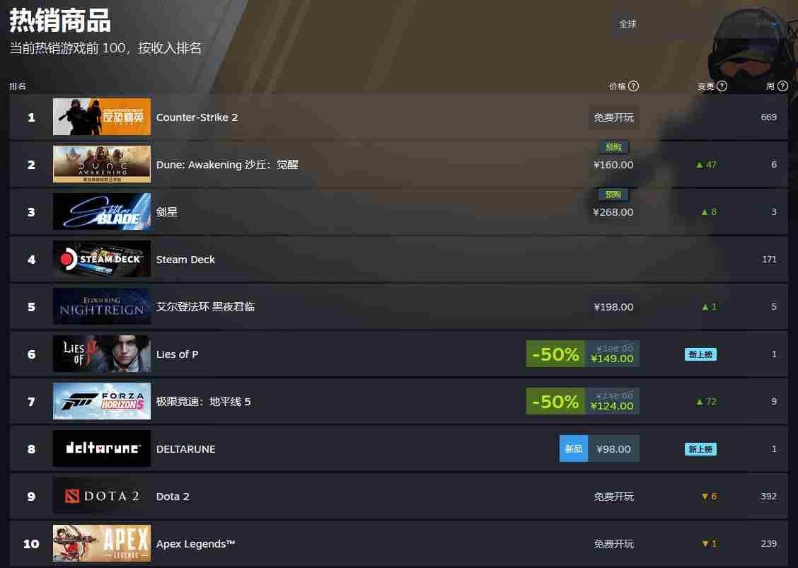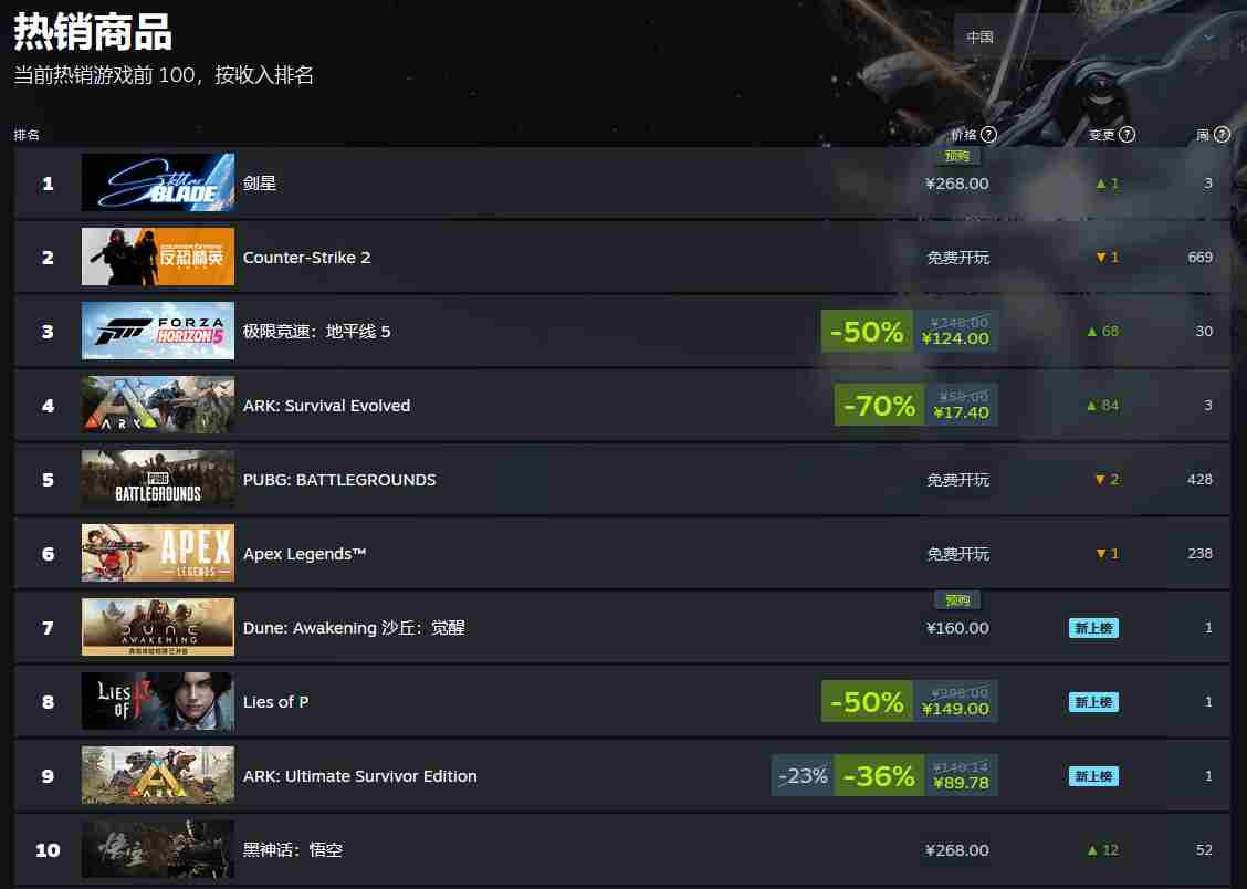 与此同时,《剑星》在全球销量排行榜位列第三,仅次于免费游戏《CS2》和将于明日发售的《沙丘:觉醒》。