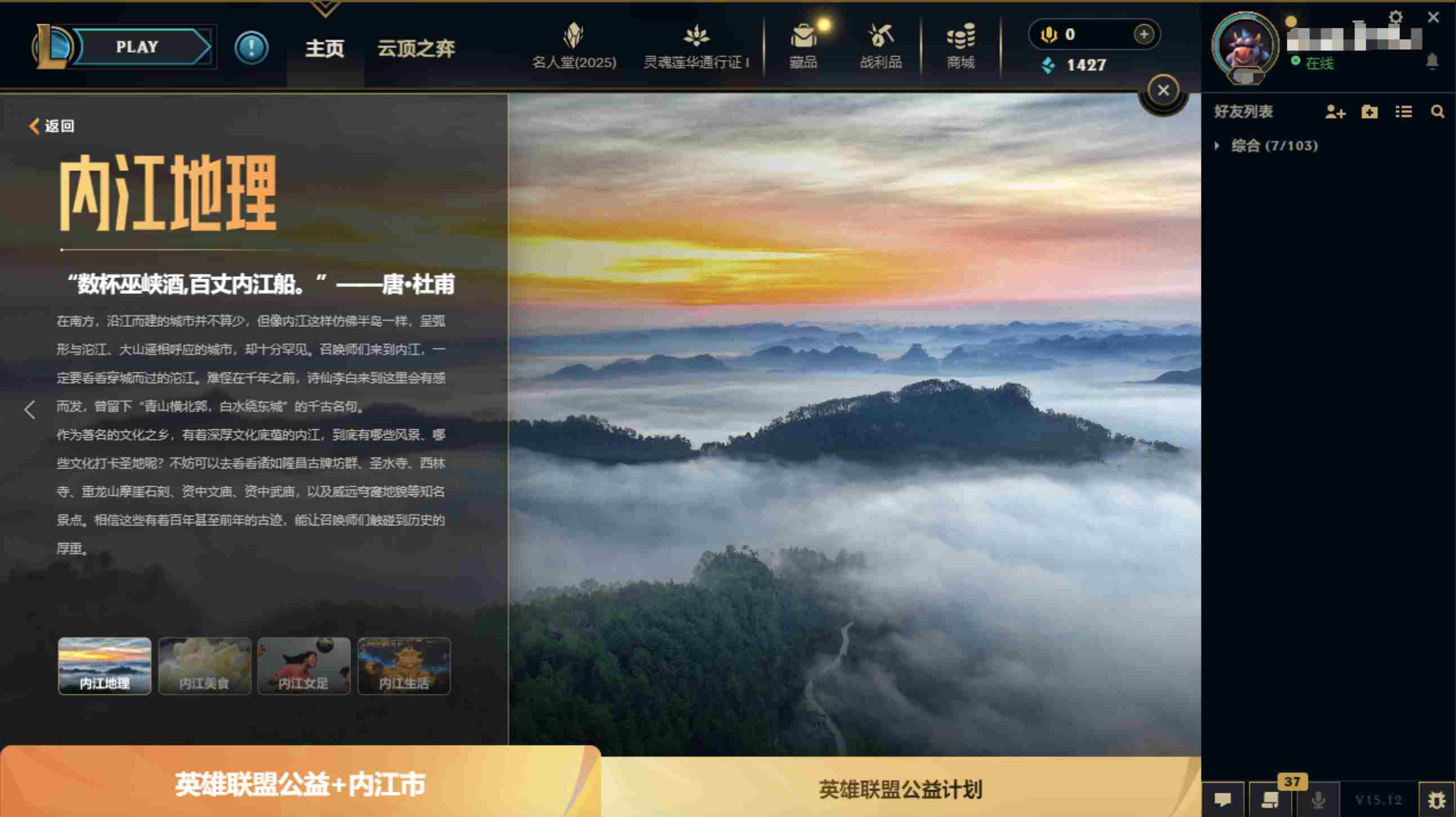 英雄联盟客户端内已上线公益专题页展示内江风采
