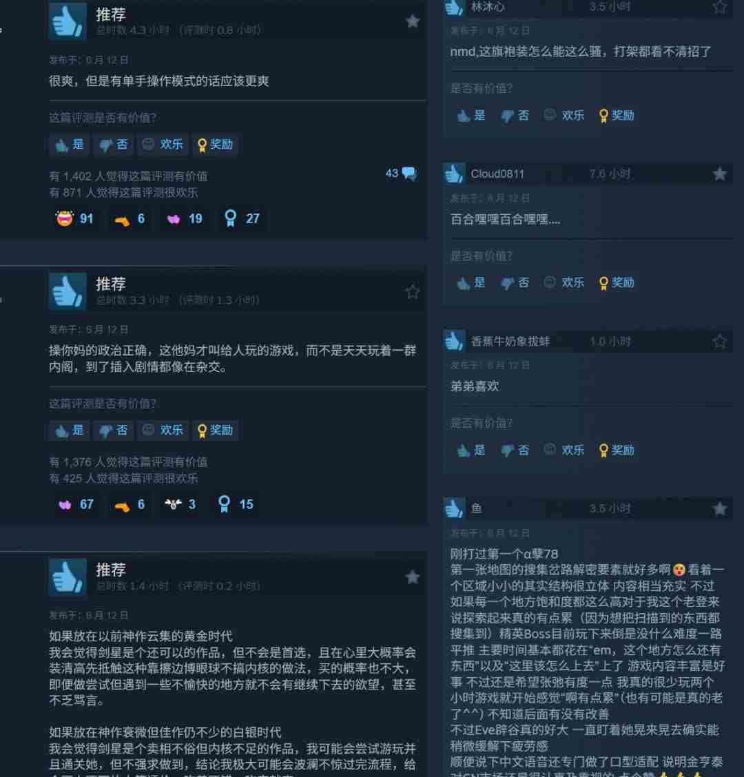 《剑星》首发当日有3240篇评价,好评率为96%。