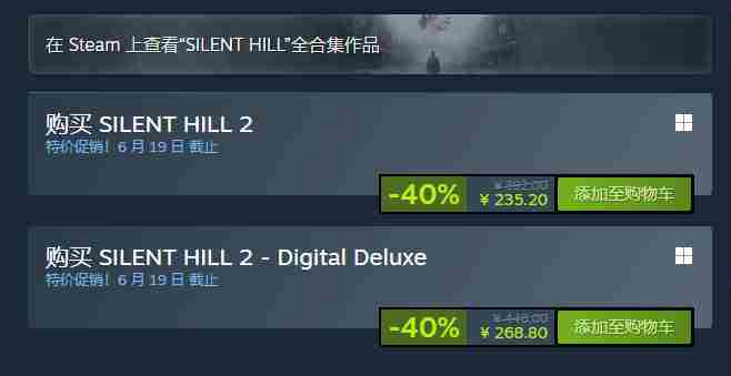 在Steam平台正火热促销中,《寂静岭2重制版》为广大恐怖游戏爱好者带来了惊喜。目前,标准版从392元降至235.20元,豪华版也从448元优惠至268.80元。这款经典重制游戏绝对值得一试,不妨抓住这难得的机会,体验一场惊心动魄的冒险。优惠截止至6月19日,赶紧入手吧!
