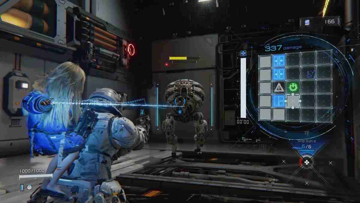 游戏中,主角Hugh身穿机甲,在月球上的高科技空间站展开行动。他携带一把无限弹药的六连发手枪,同时还能捡拾如重型步枪和电网枪等一次性强力武器,提升战斗的战术多样性。值得注意的是,主角肩上的神秘少女Diana不仅在剧情中占据重要地位,她还是破解敌人和环境谜题的“黑客天才”。