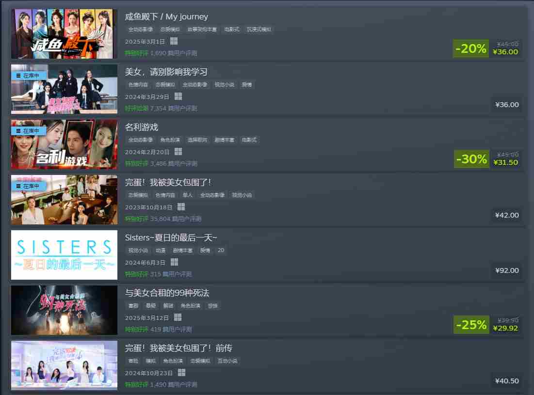很多游戏的制作人在看到这些作品的爆火后,都无一例外想要挤进这个赛道分一杯羹。有这样想法的团队显然不止一个,在《完蛋!》后出现了大量模仿者,真人互动式电影数量激增,名字中包含“美女”的就有不少。