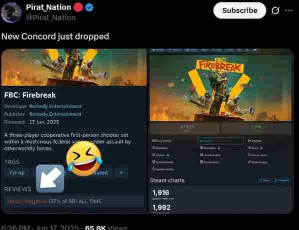 尽管Remedy的最新力作《FBC Firebreak》已经上市,但游戏的首日表现令人失望,在线玩家数量未达预期,仅勉强维持在2000人以下。玩家们普遍反映游戏缺乏新意,重复度高,深度不足,有人甚至讽刺其继承了《星鸣特攻2》的失败衣钵。对于寻求新鲜体验的玩家来说,或许应谨慎考虑是否入手。