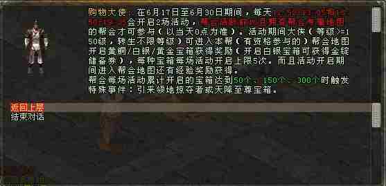 6月17日-6月30日,武林盟将于每日12:50-13:05,18:50-19:05将开启2轮帮派宝箱活动,参与活动可得金锭储备券、称号“探宝达人“、玄金矿石(特大)等珍贵好礼!武林盛夏狂欢期待您的加入!