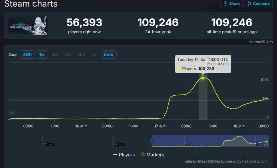 尽管口碑崩盘,但SteamDB数据显示游戏在线峰值突破10万。