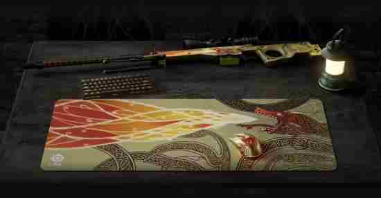 这一对联名鼠标与鼠标垫表面均绘有与 AWP | 巨龙传说相同主题的金黄底色喷火之龙图案,将于 7 月发售。
