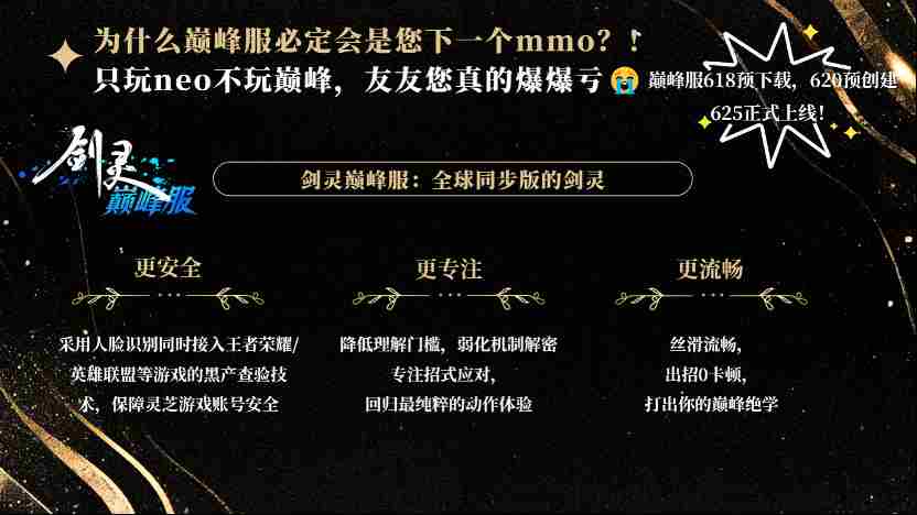 巅峰服以最经典的水月平原版本为基石,游戏内容、养成路线与玩法框架均与全球版本同步,力求为大家呈现一个既熟悉又新鲜的《剑灵》世界!这一次的巅峰服将回归动作MMO最纯粹的乐趣,以更自由、更硬核、更具挑战为目标,为喜爱挑战与刺激的核心玩家提供一个宣泄激情与精力的舞台!