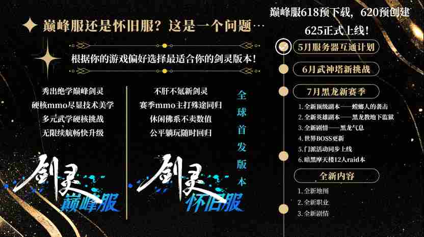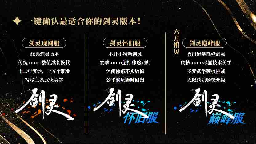 在长达十数年的运营中,我们发现玩家们也在悄悄改变,有人忙于生活,有人追求挑战,有人休闲佛性,有人深度硬核......他们对游戏内容与体验的需求也不尽相同,因此我们顺应大家的需求,推出了不同版本的服务器,试图为各个类型的玩家提供最佳游戏体验,让每位玩家都能找到适合自己的《剑灵》,这便是今天的怀旧服与巅峰服。