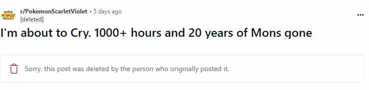根据原 PO 说明,《宝可梦 朱》中有他从最早 GBA 到现在,整整 20 年的宝可梦资料,而负责转移资料的旧 Switch 中,全部的存档都已经消失。毕竟"完整传送"功能简单来说就是"剪下>贴上"而非"复制>贴上"。