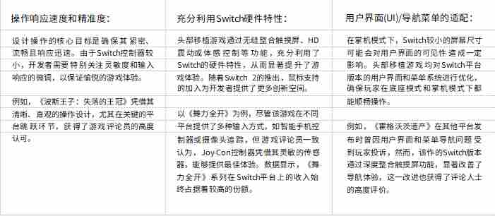 3. 在操作优化和价值感上表现突出,是头部Switch移植游戏的特征