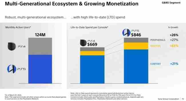 这一现象背后,是索尼对PS5商业模式的全面进化。Ahmad指出,截至2025年3月31日的财年,PS5的月活跃用户数首次超越PS4。在前一财年,两者的活跃用户数量仍处于持平状态。换句话说,PS5不仅销量表现强劲,其活跃度也已经逐步取代PS4成为索尼主机生态的核心平台。