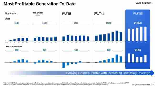 从具体数据来看,PS5目前已累计创下约130亿美元的利润,而前四代PlayStation主机的总利润仅为100亿美元。其中,PS1为索尼带来了约30亿美元盈利;PS2则实现了20亿美元利润;PS4表现最为稳健,录得高达90亿美元的收入;至于PS3,由于Cell架构研发成本高昂、发售初期定价过高(599美元),反而录得亏损,累计亏损额约为40亿美元。可见,尽管PS4在销售与游戏生态上已经取得了巨大成功,但PS5仅凭一代机型就实现了历史性超越。