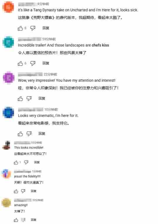 首支宣传片公布后,在外网迅速收获了大批的粉丝,很多外网玩家对《归唐》表示赞叹,认为游戏呈现的质量非常出色,有玩家称《归唐》就像是《神秘海域》的唐代版本,酷炫十足;还有玩家夸赞道:“太令人震惊了,中国游戏开发商正在崛起!”