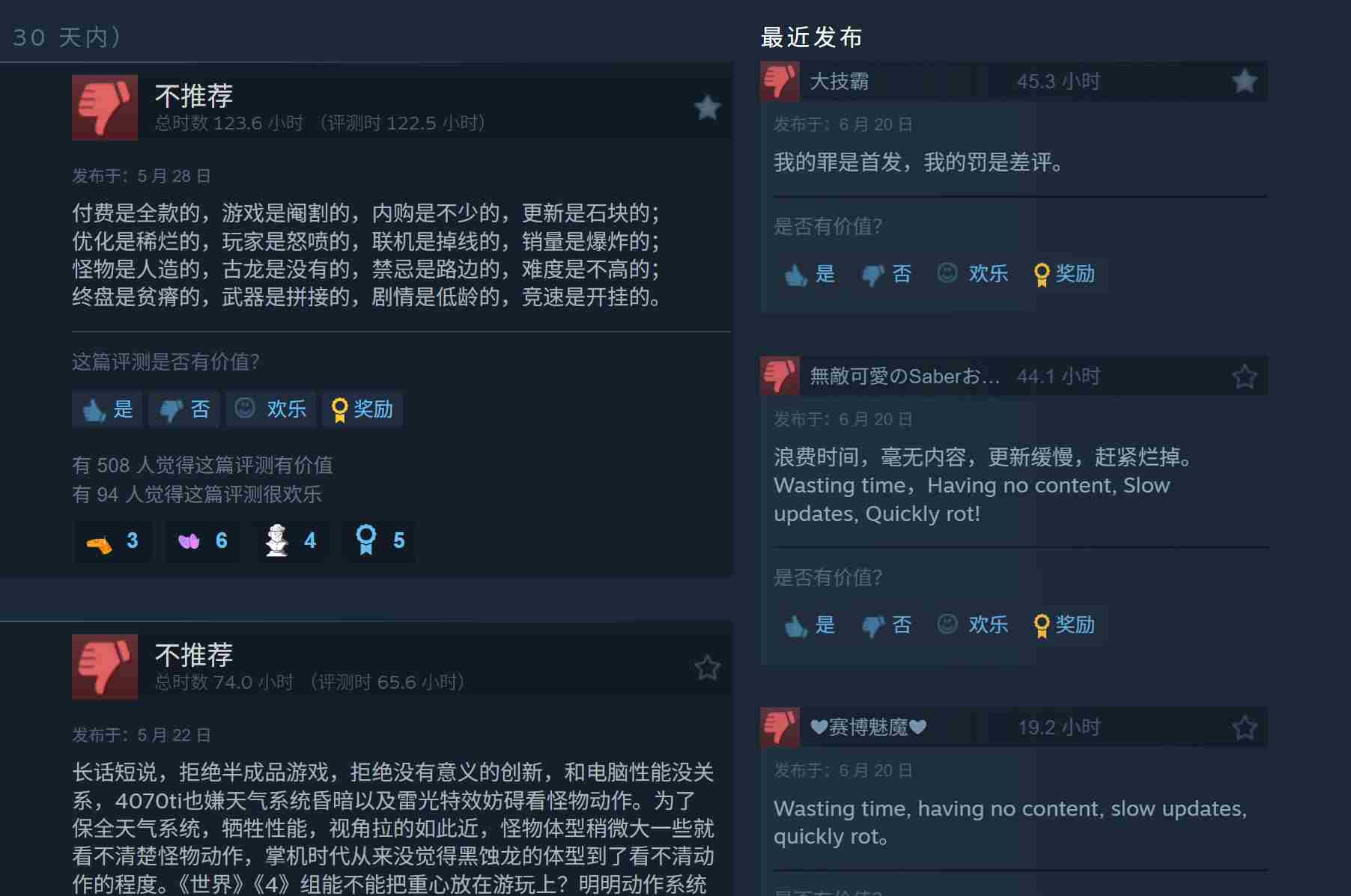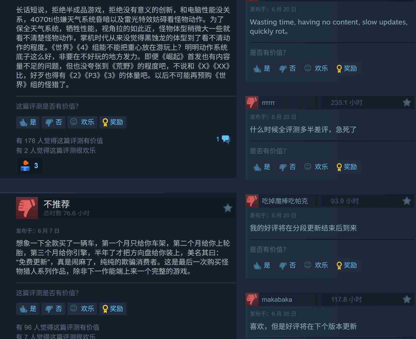 虽然国外玩家的主要批评在于优化,但国内玩家更关心的是内容更新太慢,而且整个游戏仍然是一个半成品。
