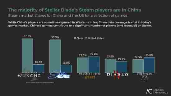 报告强调,《剑星》的案例再次凸显中国市场的战略价值。数据显示,近期多款热门游戏的国区玩家占比均表现突出: