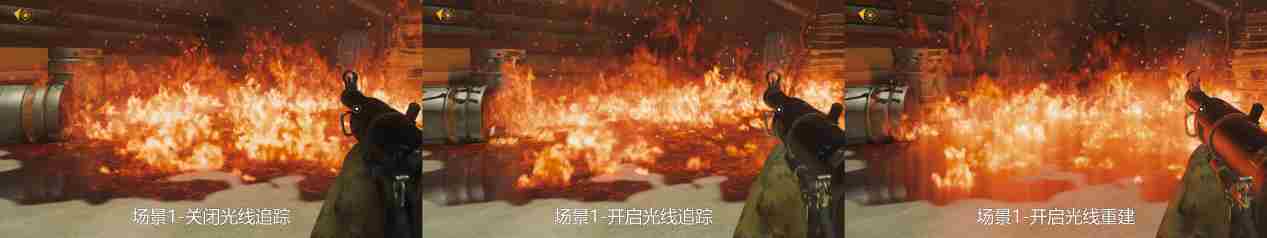 《FBC: Firebreak》里也充分充分展现了NVIDIA新一代Transformer AI模型与DLSS 4技术的强大实力。游戏中会有大量的火焰效果,火焰的光线会在周围环境中反射,火焰的颜色和亮度会根据环境光的变化而变化,甚至可以模拟出热浪效果,让火焰周围的空气看起来像是在扭曲和波动,这种反射效果在传统的渲染技术中难以实现。而在关闭了光线追踪时,我们可以看到水面反射出的倒影显得模糊失真,而开启光追后,反射画面立刻变得清晰自然,连细微的波纹都十分清晰。并且游戏在提升帧率的同时,还进一步增强画面细节,让整体游戏体验既流畅又逼真。