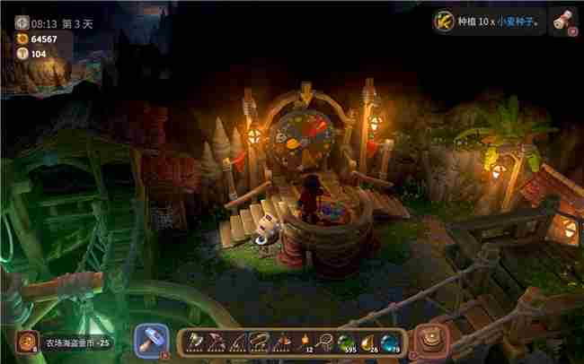 最后,游戏还扩展了一片新的可探索区域“海盗湾”。和之前的农场、森林等注重资源采集与农场模拟玩法的地图不同,海盗湾将注重探索与一次性游戏内容。玩家将能以新职业“造船匠”的身份,更好的探索该区域,同时该地区还将解锁投斧头、小鸡赛跑、幸运转轮等多个不同的小游戏玩法。