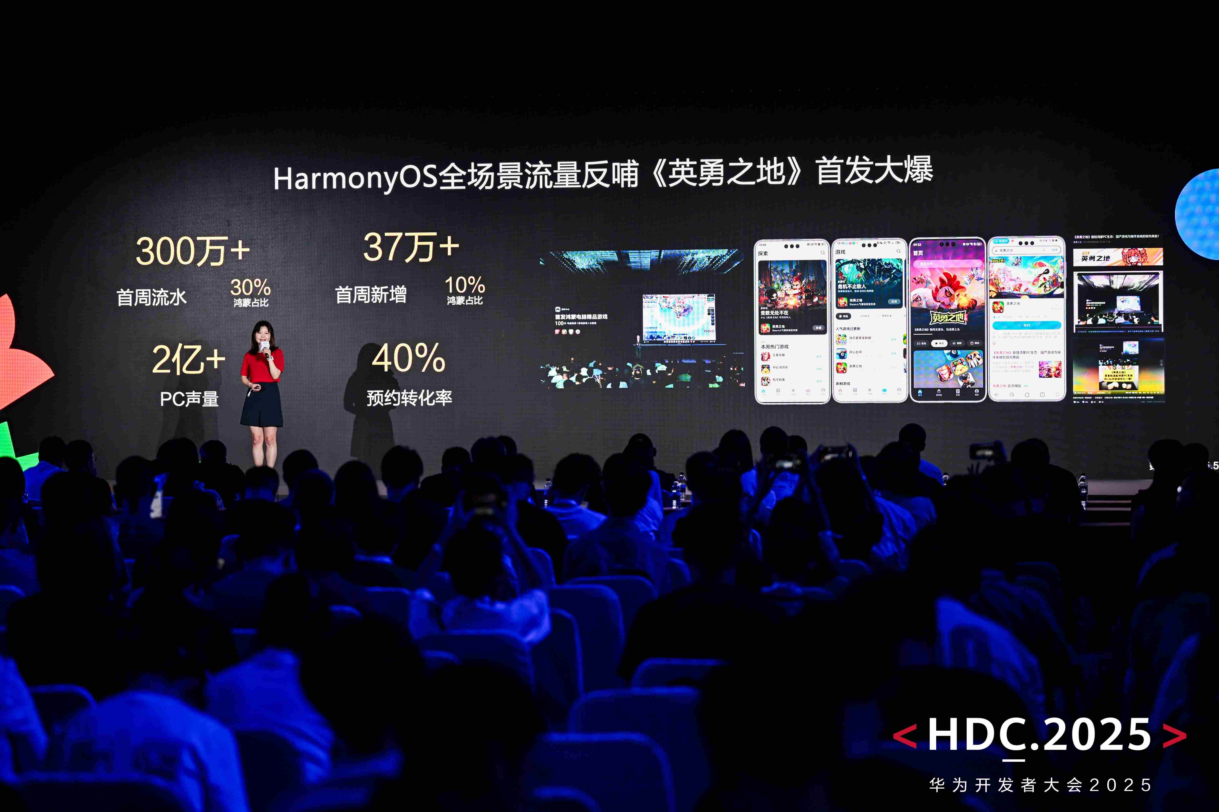 国产黑马刷宝爽游《英勇之地》商务负责人在本次分论坛分享了鸿蒙全场景游戏实践经验,《英勇之地》手游于5月首发上线鸿蒙平台,同时完成了PC版对鸿蒙电脑的全方位技术适配。借势鸿蒙生态丰富的分发场景与成熟的首发运营方案,《英勇之地》在首发阶段斩获亮眼成绩,首周流水300万+,其中鸿蒙平台占比30%,预约转化率高达40%。由此可见,鸿蒙全场景生态的流量红利,正在为游戏用户增长带来全新机会点。