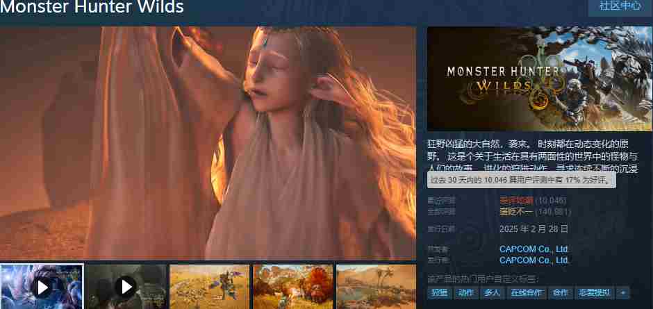 《怪物猎人荒野》备受瞩目,然而Steam上的负面评价如潮,与起初的热潮形成强烈对比,目前好评率仅为17%。玩家普遍反映PC版性能不佳、内容缺乏深度、怪物种类单一,这些问题令游戏口碑遭遇重创。
