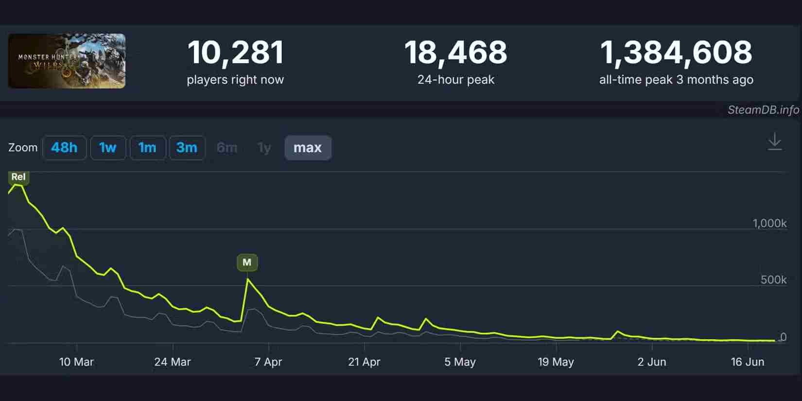 该作于2月28日发售后,曾以138万的Steam同时在线峰值创下卡普空动作角色扮演系列在PC平台的最佳首发纪录。然而由于严重的性能优化问题,游戏被PC玩家猛烈批评,导致人气持续走低。