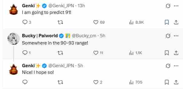 值得一提的是,《幻兽帕鲁》社区经理Bucky也在评论区进行猜测,并认为在90-93分之间,该博主对此回复到“好了!我也希望如此!”