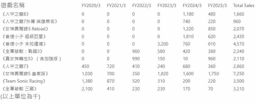 近日,世嘉(SEGA)在一次管理层报告中不慎曝光了旗下多款游戏的销量数据。由于PDF文件处理上的一个小错误,这些原本不为人知的数字意外地走到了台前,为外界提供了对其游戏市场的全新视角。