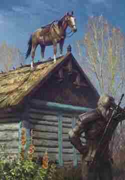 “天呐,我也记得我的马卡在了这个屋顶上,还是那个有山羊的家。”