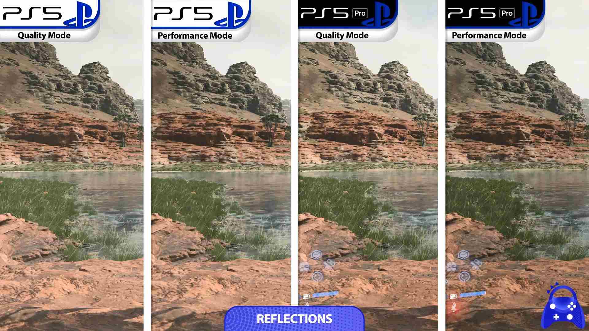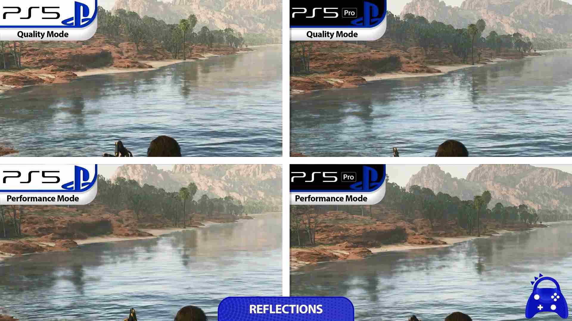 双平台均提供画质/性能双模式选择。画质模式下,PS5 Pro在光线反射效果上优势明显;性能模式下,Pro版在反射质量、阴影细节等方面表现更优,其他性能指标两者基本持平。