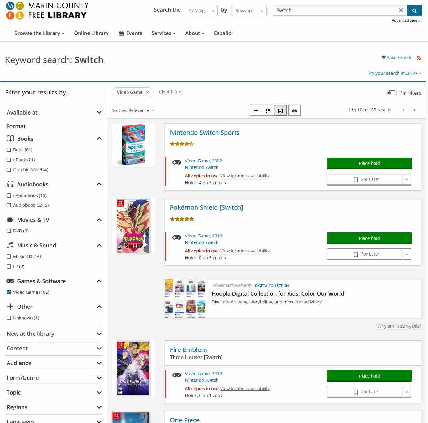 尽管涉案的七家图书馆具体名称未被公开,但马林县自由图书馆系统官网显示,该系统提供近200款Switch游戏供公众免费借阅。目前尚不清楚被盗游戏是否属于这批公共资源,以及是否已被警方追回。