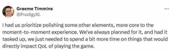 最终玩家无需再依赖模改方案。但为何拍照模式未能赶上首发?Timmins在后续推文中解释道:"我优先让团队打磨了更核心的即时体验要素。拍照模式早有规划且已立项,但我们决定先集中精力提升直接影响游戏体验的品质。"