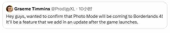 创意总监Graeme Timmins在推文中表示:"各位玩家,在此确认拍照模式将会登陆《无主之地4》,我们计划在游戏发售后通过更新补丁添加该功能"。Gearbox官方账号也转发了这一声明。目前尚不清楚"无拍照模式"的传言源头,但本周确实成为了玩家社区的讨论焦点。对部分玩家而言,这个能暂停游戏细看伤害数字的功能至关重要——尽管Gearbox表示会提供更精准的DPS评估方式——其缺席可能性甚至促使模改作者Epic NNG承诺尝试自制该功能。