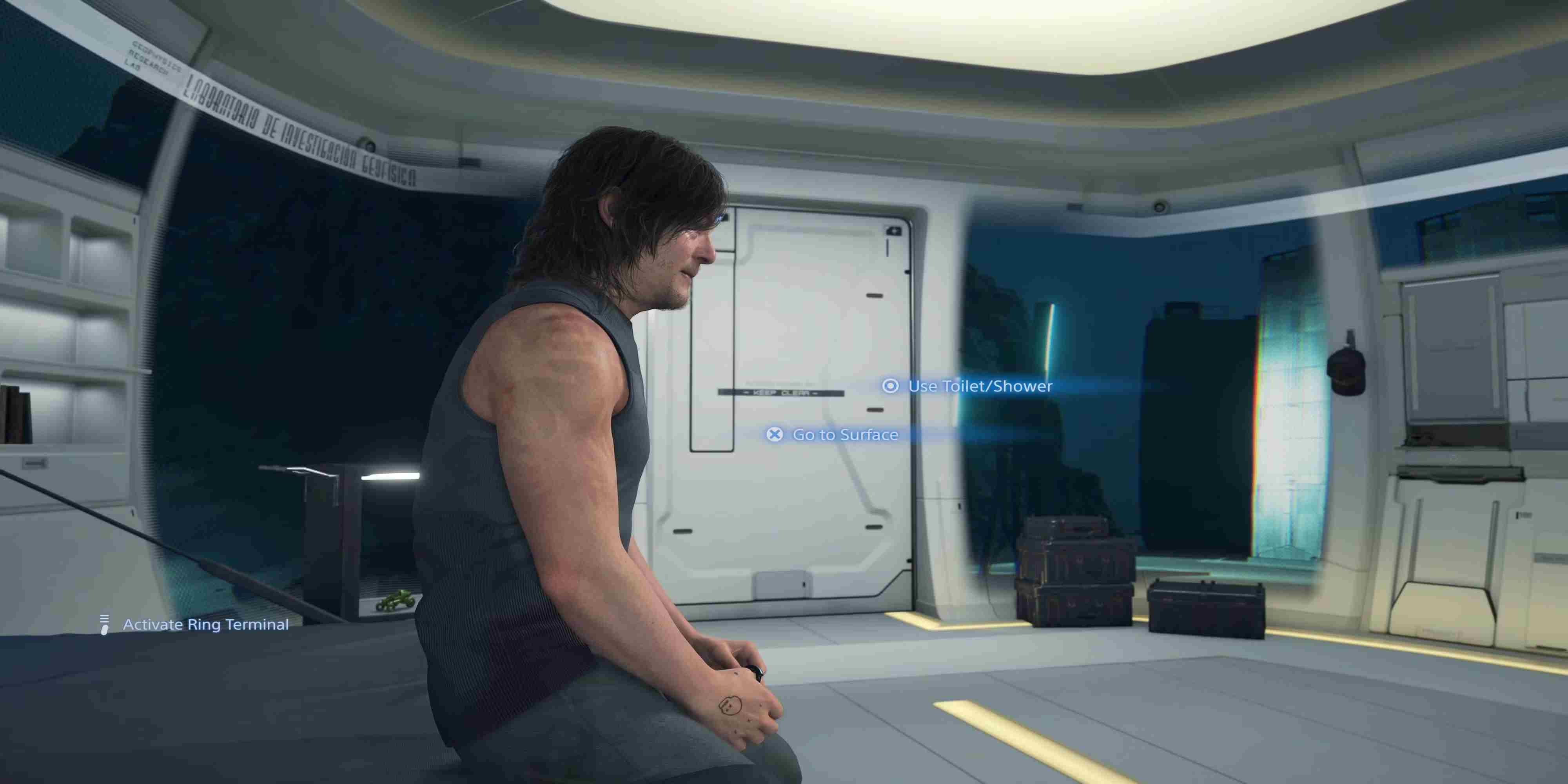 在续作《死亡搁浅2:冥滩之上》中,淋浴系统得到了保留,并在前作的基础上引入了更多新功能。和初代一样,山姆可以在私人房间中休息、如厕或淋浴。玩家只需将视角对准淋浴间,选择“使用厕所/淋浴”选项,即可触发山姆洗澡的过场动画。