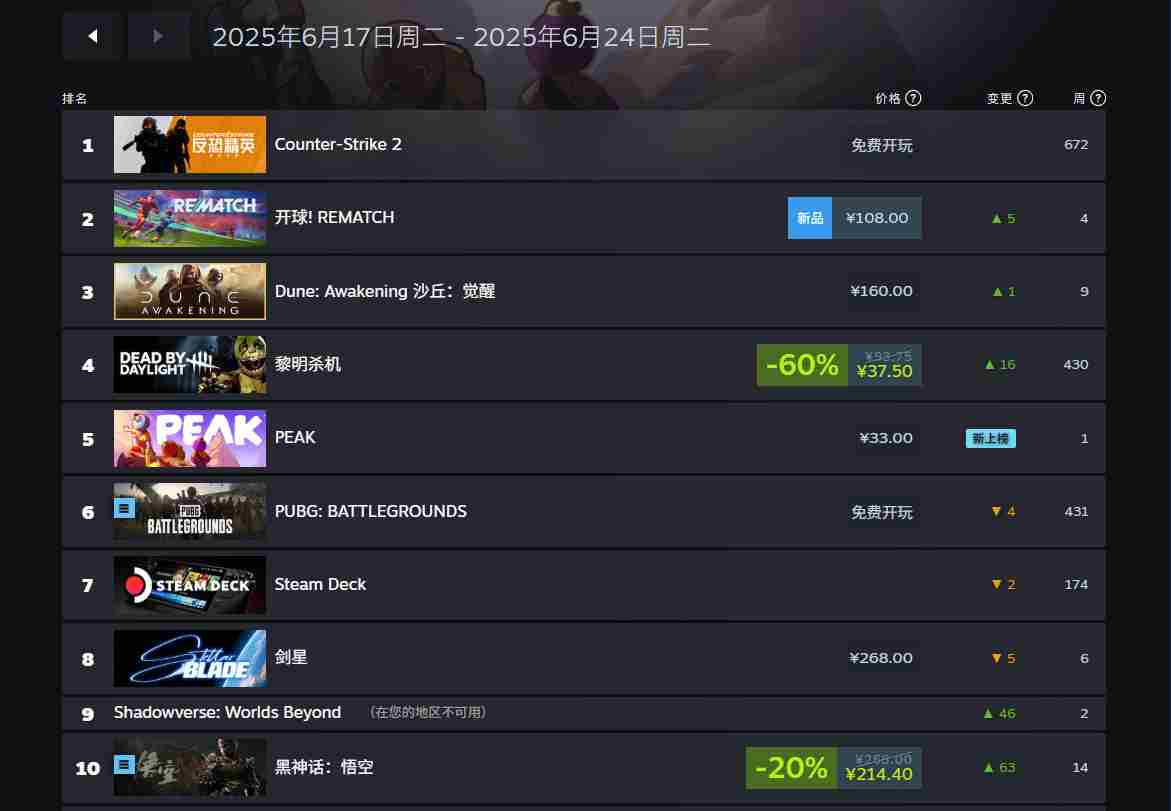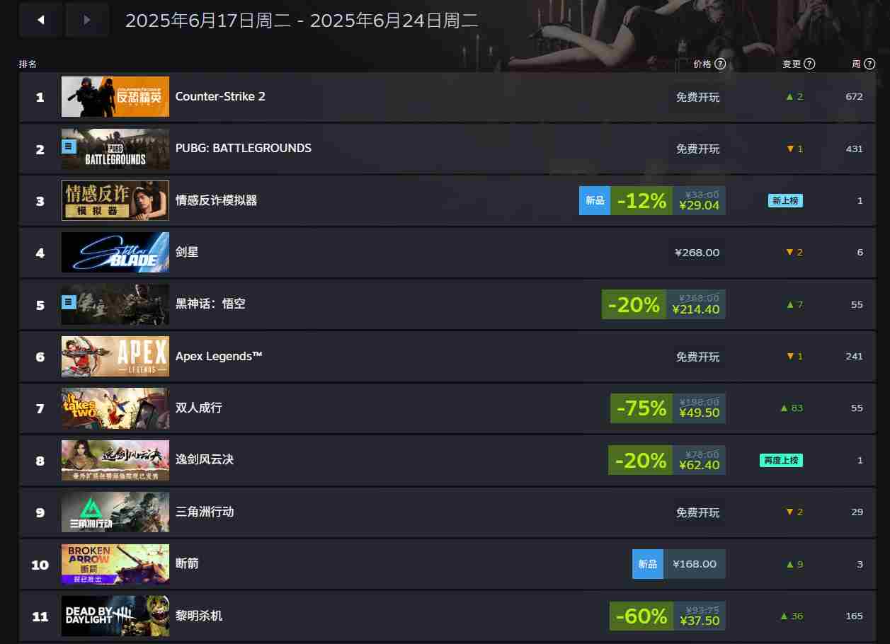 Steam国区周销榜